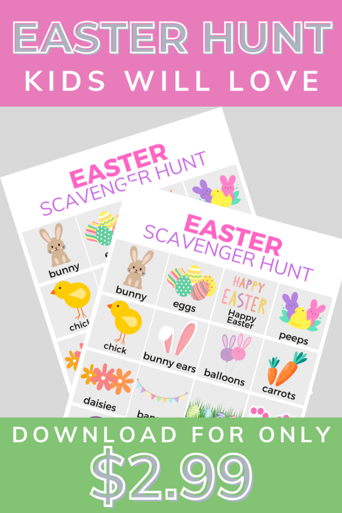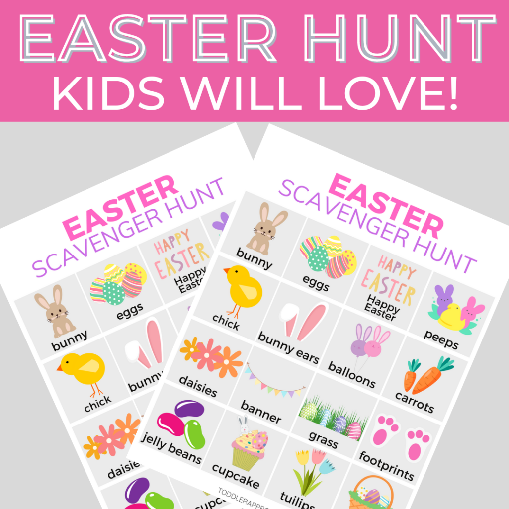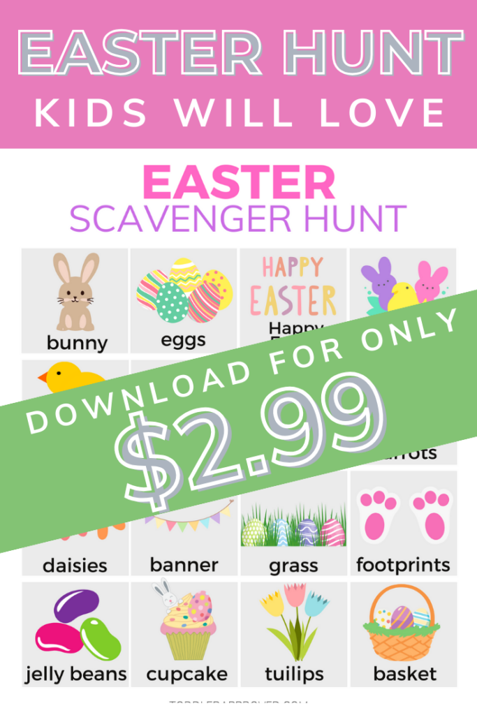 Need an easy Easter activity? Check out our Printable Easter Scavenger Hunt. Kids will love it and so will you! It's great for toddlers on up!