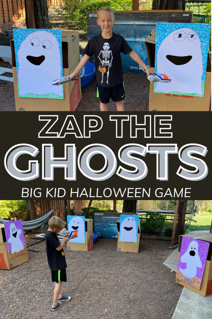 Inside this post we share a fun Halloween party game for big kids called Zap the Ghosts! You'll need a nerf blaster or small foam balls! Big kids will love this.