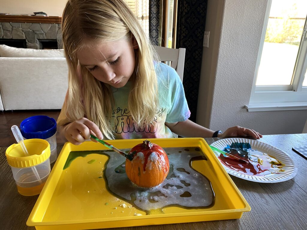 - Observational skills as they watch the pumpkins fizz and they experiment with the paint.