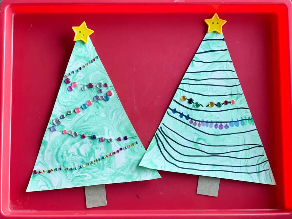 You need to try Shaving Cream Marbled Trees for Christmas! This sensory art project is so neat for toddlers, preschoolers, and more!