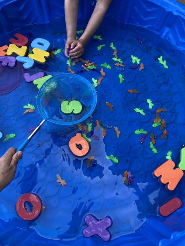 Rescue the ABCs from the kiddie pool with these fun fish nets! Preschoolers and toddlers can learn to identify and name the letters of the alphabet through quick to set up sensory activities!