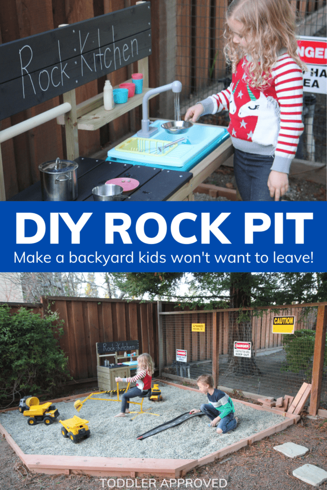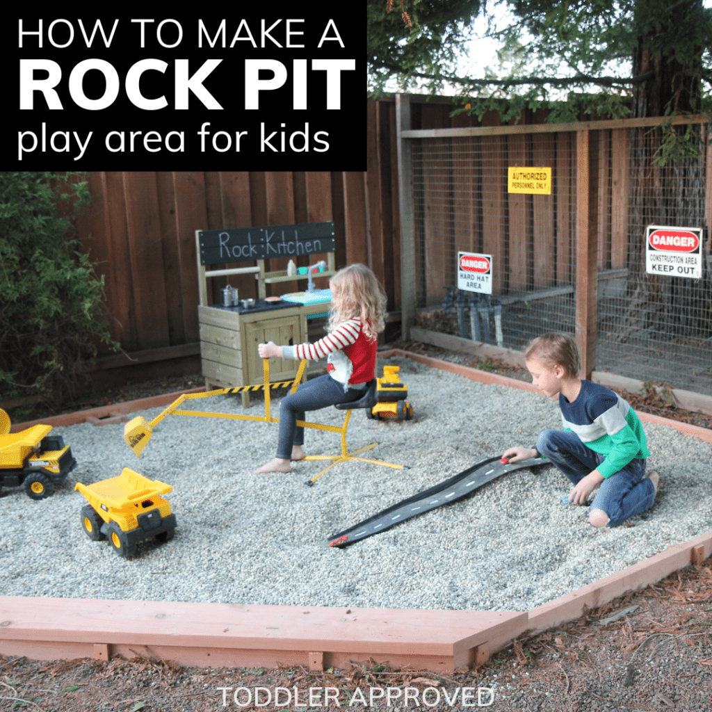 How do you make a boring backyard fun? Turn it into a backyard construction play area (aka a rock pit)!