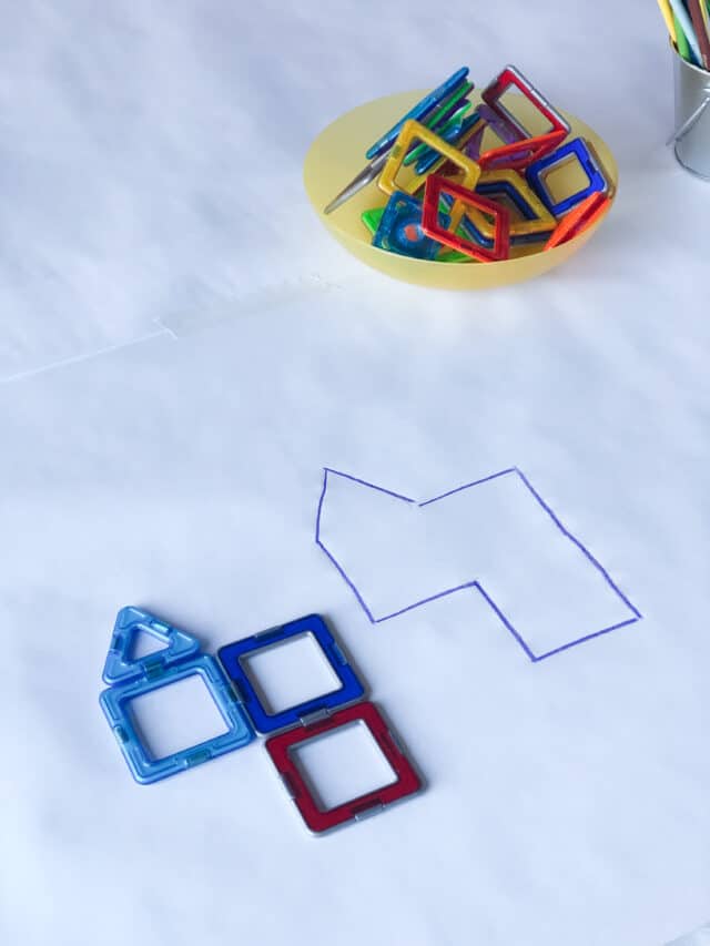 1. Make magformer and magnatile creations on the paper. Trace and color them!