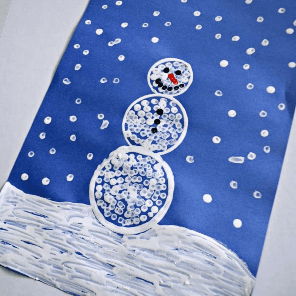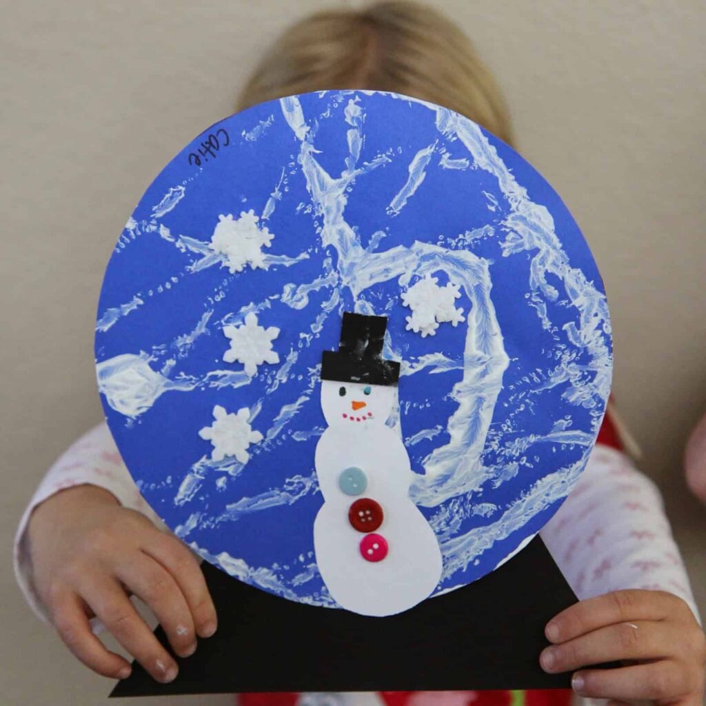 This project mixes marble art with a fun snowman craft. Kids think it is so fun!