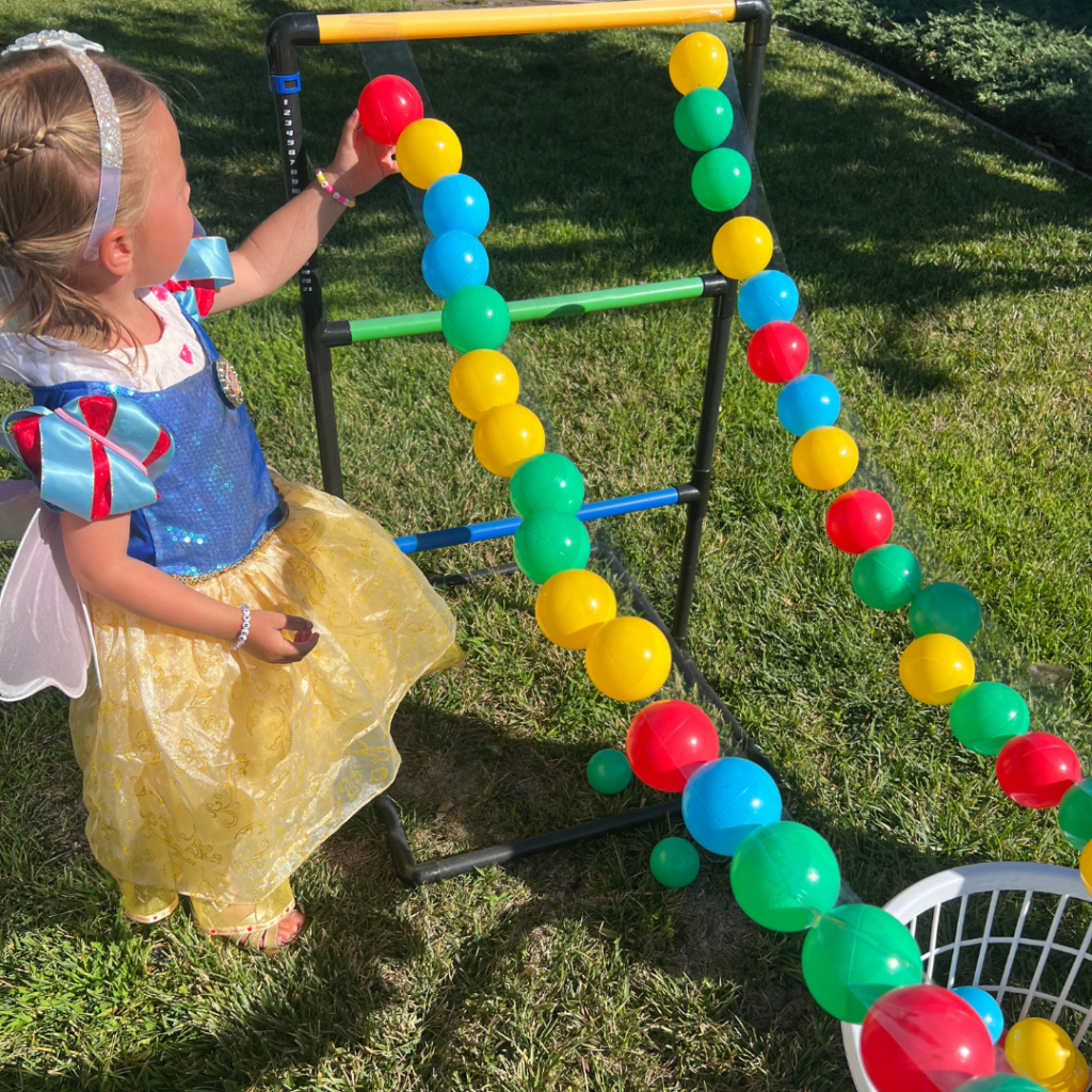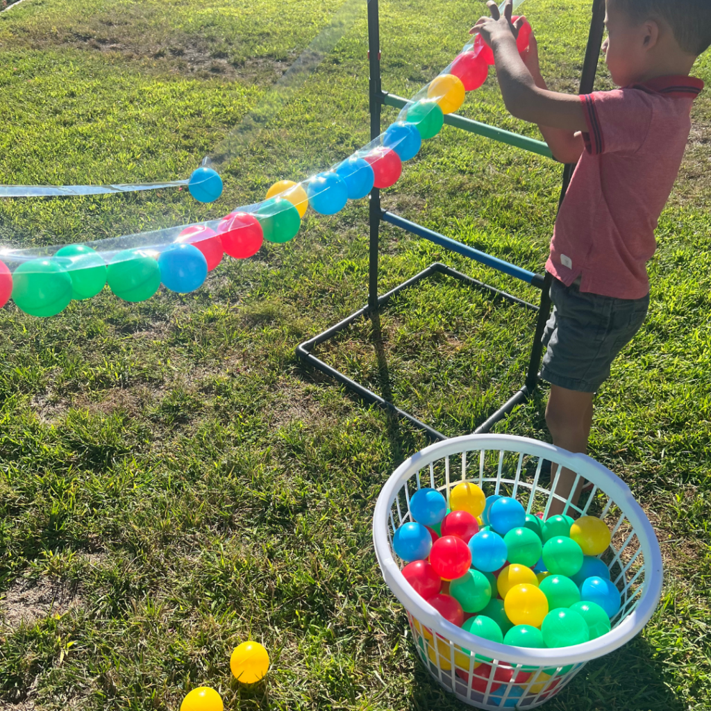 This ball activity teaches kids to have fun working together with a team and take turns as they play. They also work on their communication skills and social skills while they stick the balls on the tape.
