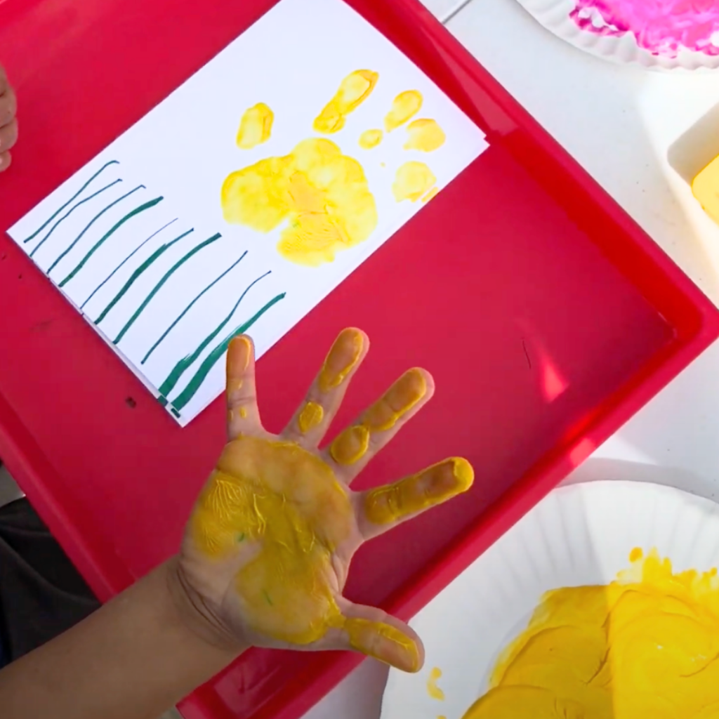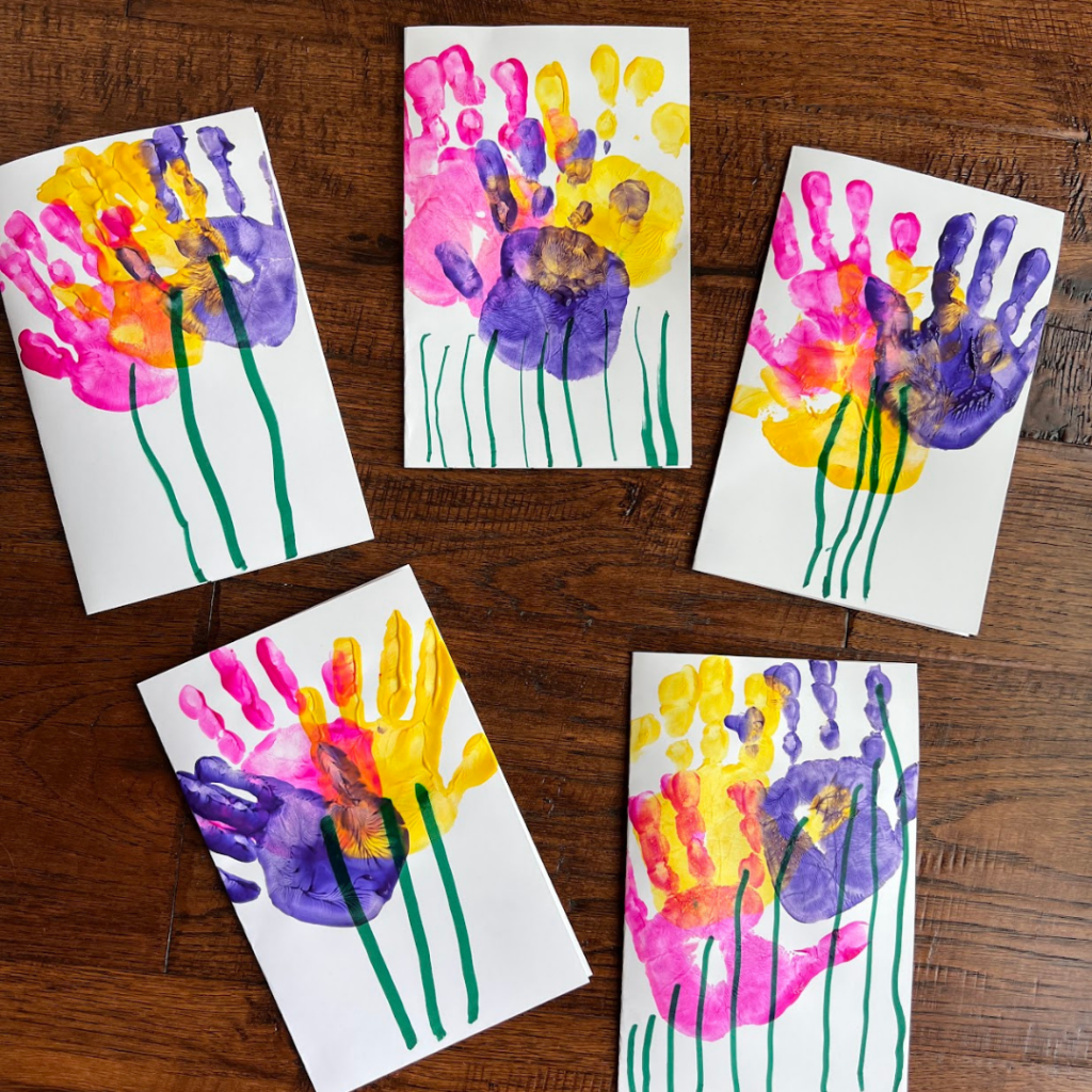 - Repeat with additional colors of paint until the child has a bouquet of handprint "flowers" on their card.