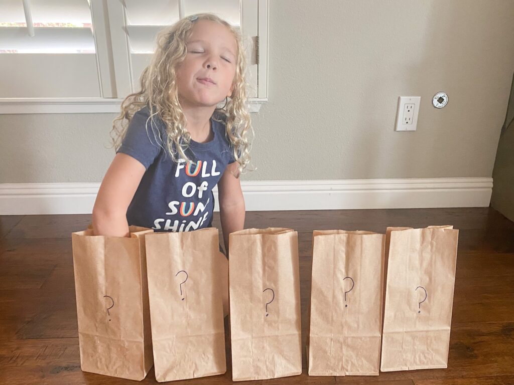 - Have the kids stick their hand in each bag and touch the item without looking at it.