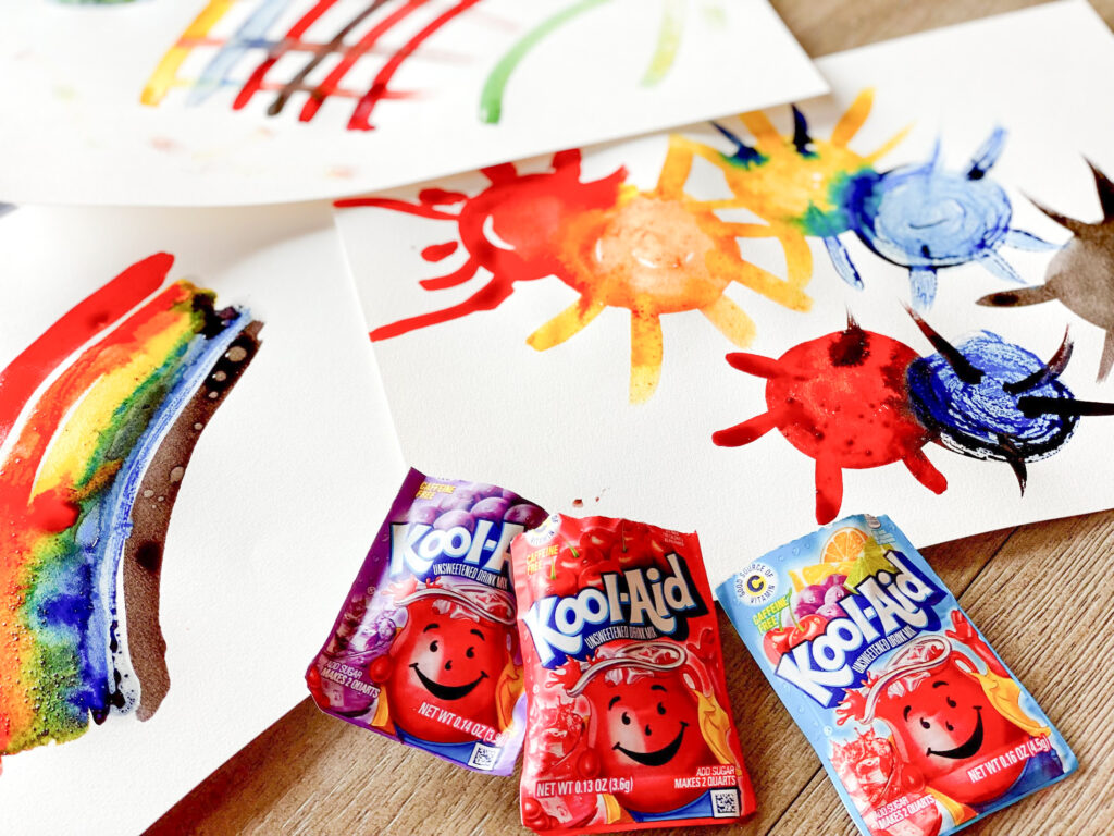 - Give kids a paintbrush, kool-aid paint, water, and paper and invite them to paint on the paper.