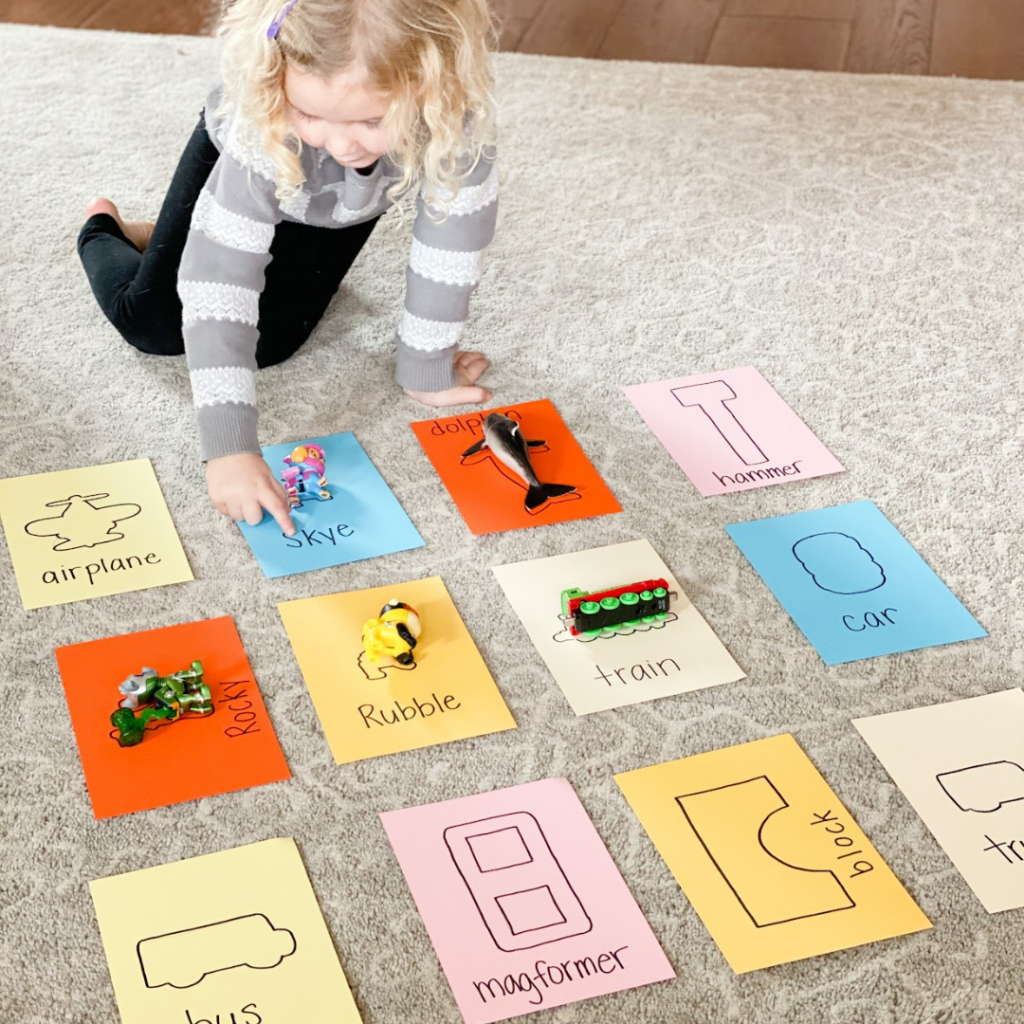 - Have kids find the toys and match them to the outline on the paper to complete the puzzles.