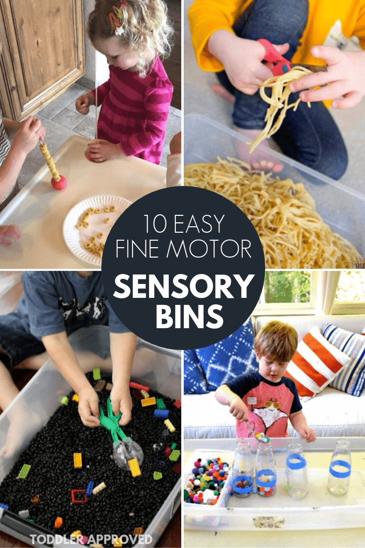 Today I'm sharing 10 Incredibly Easy Fine Motor Sensory Bins for Toddlers!Â