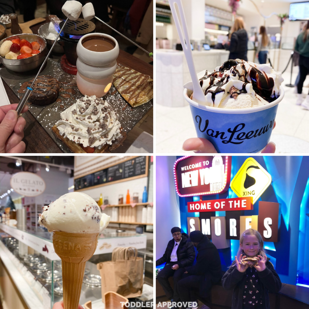 - Max Brenner- Make sure to grab a reservation so you don't miss this yummy spot! The desserts are delish! We especially love the hot cocoa and fondue!