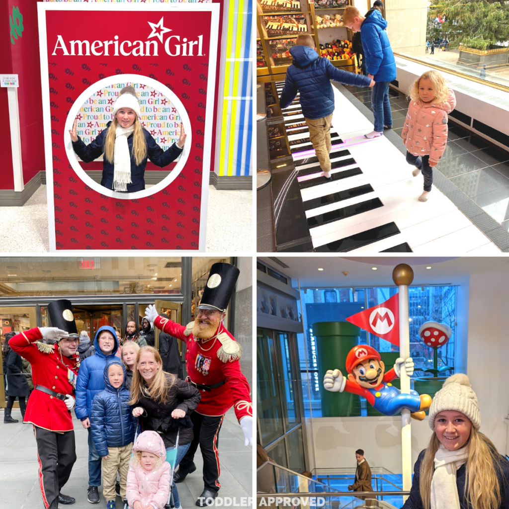 - FAO Schwarz- A GIANT toy store with unique toys for kids! The flagship store in Rockefeller Center is not to be missed! My kids love waiting in line for a turn to play on the iconic giant piano! You can also watch magic tricks, try out toys, and (our favorite) pick your favorites stuffies from the dozens of stuffed animals!