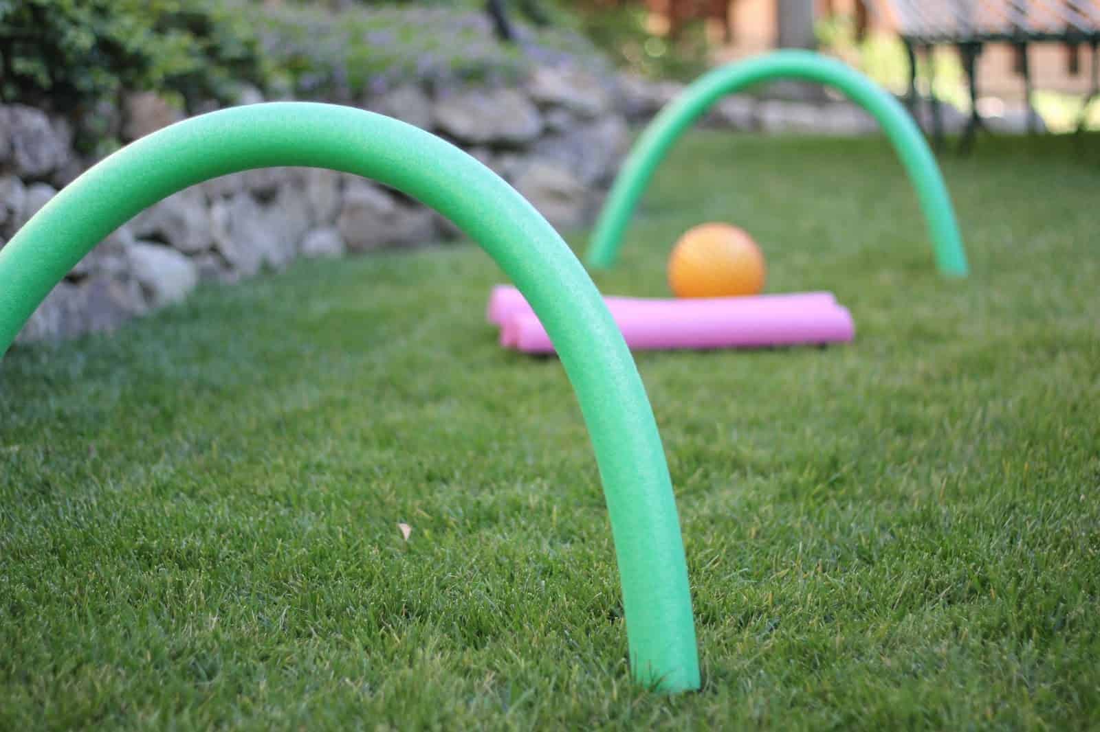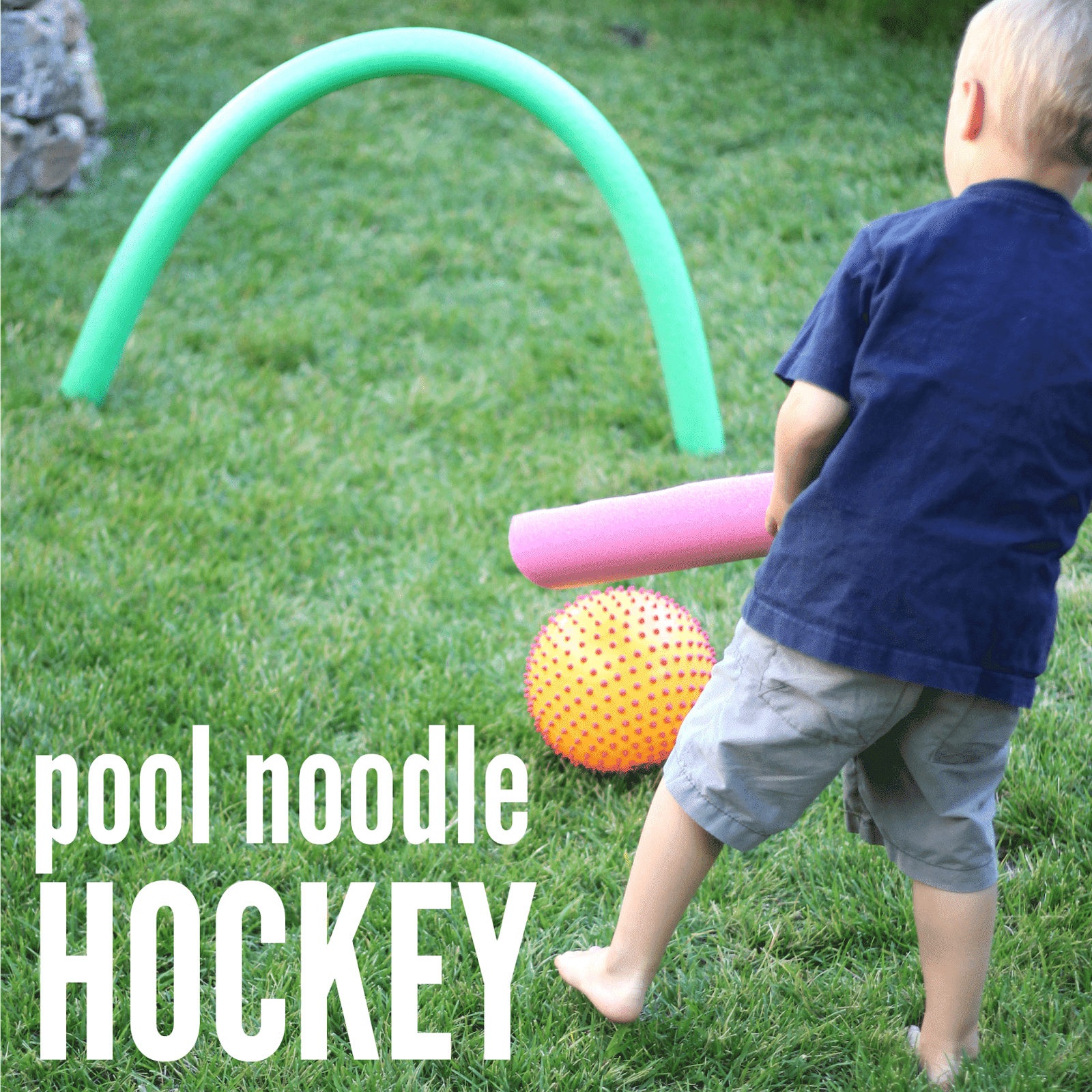For our pool noodle hockey game I created goals and sticks using pool noodles. Scroll down for more details.